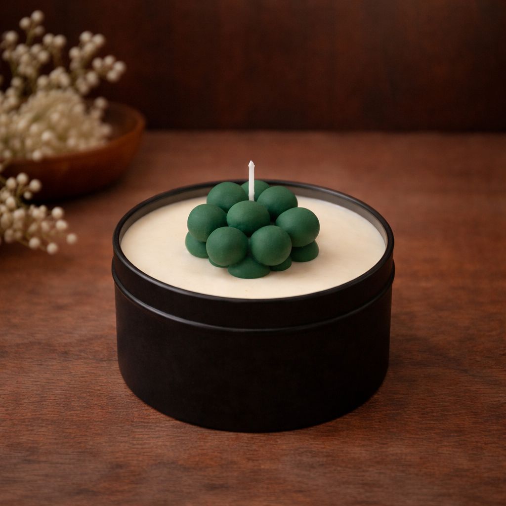 Nuestras velas aromáticas están hechas con cera de soja natural y vertidas en latas de aluminio reutilizables, para una combustión limpia y duradera.